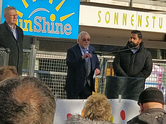 es von Bürgermeister Carsten Wewers, Horst Nilius als Zeitzeuge des Nationalsozialismus, Mansur Tascan vom Deutsch-Türkischen Freundeskreis und Sven Lütkehaus vom Paritätischen Wohlfahrtsverband.